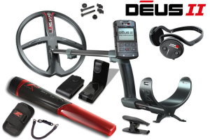 Metalldetektor XP DEUS II 28cm Spule mit Funkkopfhörer WSA2 & MI-6 Pinpointer Professioneller wasserdichter Multifrequenz-Metalldetektor mit 28cm Suchspule, Displayeinheit und WSA2 Funkkopfhörer. Das Paket enthält außerdem einen wasserdichten Funkpinpointer.