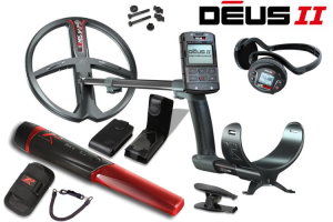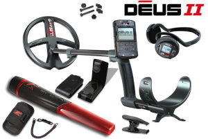 Metalldetektor XP DEUS II 22.5cm Spule mit MI-6 Pinpointer Professioneller wasserdichter Multifrequenz-Metalldetektor mit kleiner 22,5cm Suchspule und Displayeinheit. Das Paket enthält außerdem einen wasserdichten Funkpinpointer.
