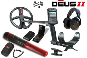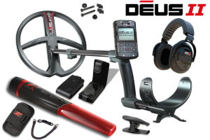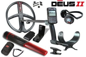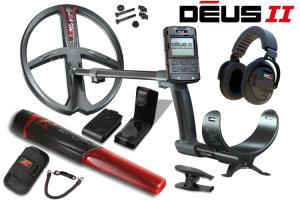 Metalldetektor XP DEUS II 34cm Spule mit MI-6 Pinpointer Professioneller wasserdichter Multifrequenz-Metalldetektor mit 34cm Suchspule und Displayeinheit. Das Paket enthält außerdem einen wasserdichten Funkpinpointer.